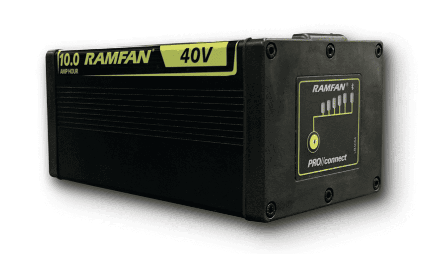 • Fail-Safe Redundancy: The RAMFAN M and R-Series Battery Packs are designed for ultimate reliability for jobsites where equipment readiness is critical. Each pack is delivered with fail-safe redundancy built-in. If a single cell were to fail in the field, the pack remains operational.